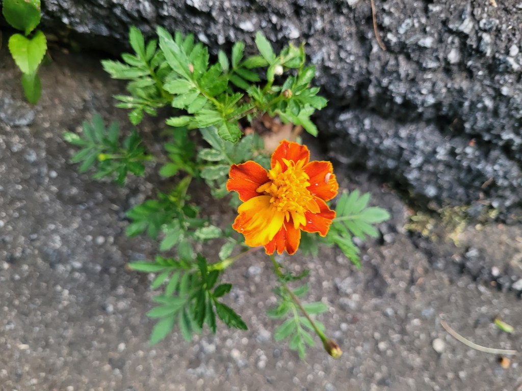 Marigolds are sturdy, persevering little plants. When I was eight, the back of our car got damp. Marigold seeds sprouted in the carpeted upholstery. Early this summer, I found a bud pushing through the pavement outside my front garden: a determined escapee from last summer’s border.